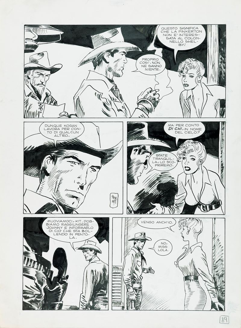 Tavola originale realizzata da Bernet per "L'uomo di Atlanta" edita sul Texone n. 10 a pag. 89 dalla Bonelli nel 1996. Firmata.