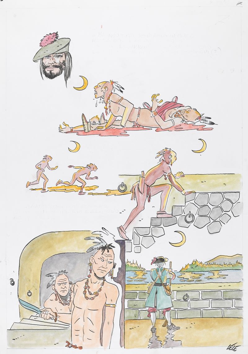 Tavola originale realizzata da Vianello per l'edizione deluxe del suo celebre "Deerfield 1704", edita dalle Edizioni Segni d'Autore nel 2021. Firmata al fronte, firmata e titolata al retro.