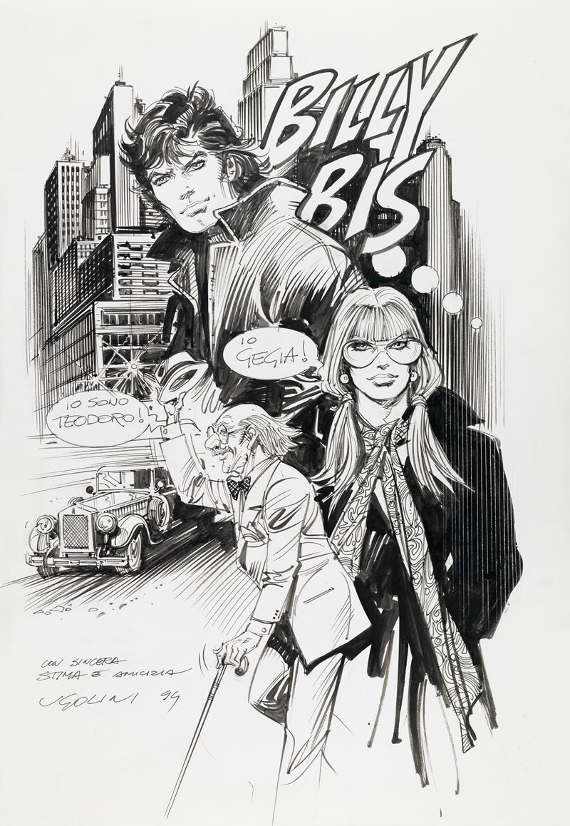 Disegno originale realizzato da Ugolini nel 1994 raffigurante il suo Billy Bis. Firmato, datato e dedicato.