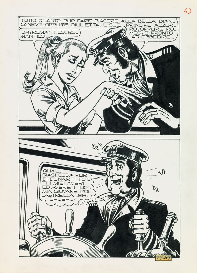 Coppia di 2 tavole originali realizzate da Magnus per "La minaccia alcoolica" edite su Alan Ford n. 27 a pag. 42 e 43 dalla Editoriale Corno nel 1971.