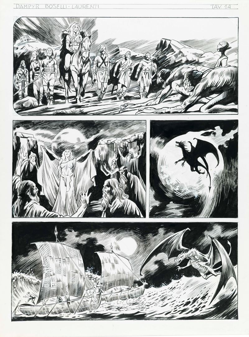 Tavola originale realizzata da Laurenti per "Il segreto di Amber Tremayne", edita su Dampyr n. 185 a pag. 14 dalla Bonelli nel 2015.