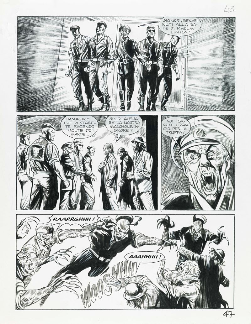 Tavola originale realizzata da Laurenti per "Zarema!", edita su Dampyr n. 170 a pag. 47 dalla Bonelli nel 2014.