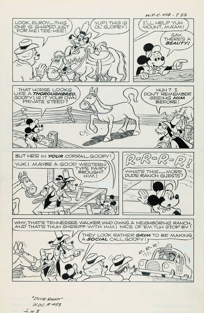 Tavola originale realizzata da Murry per "Dude Ranch", pubblicata per la prima volta negli USA su Walt Disney‘s Comics and Stories n. 458 nel 1978 e successivamente in Italia su Topolino n. 1318 nel 1981.