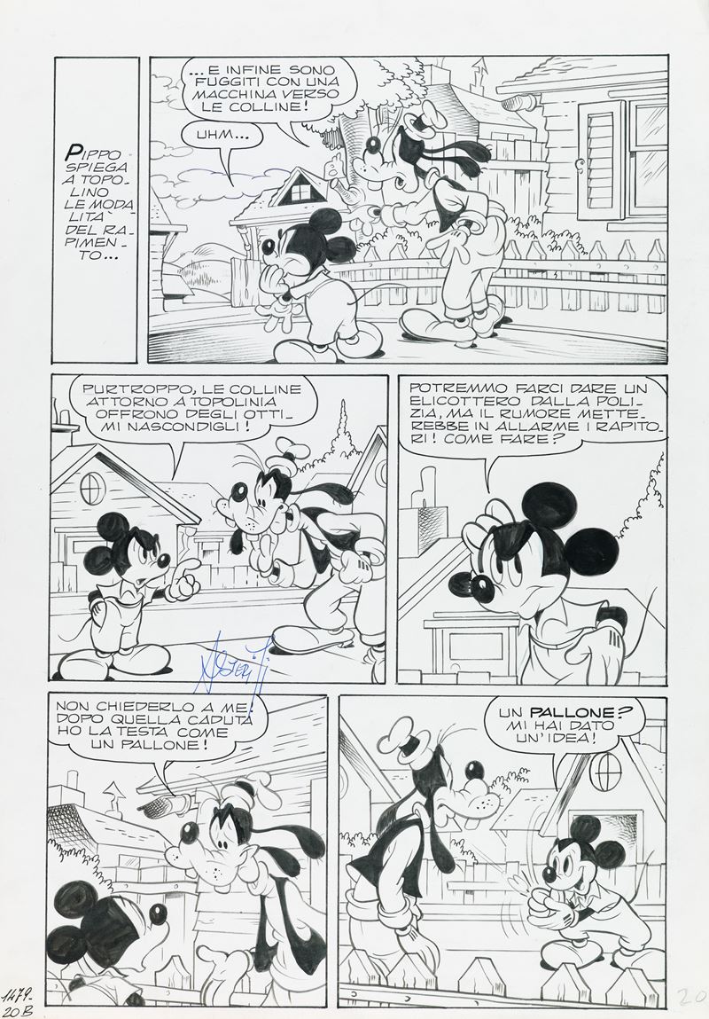 Tavola originale realizzata da Asteriti per "Gilberto e il tifo scientifico", edita su Topolino n. 1479 a pag. 20 nell'aprile 1984. Firmata.