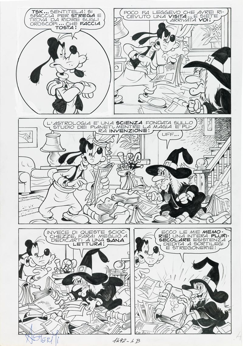Tavola originale realizzata da Asteriti per "Pippo e l’oroscopo scientifico", edita su Topolino n. 1492 a pag. 4 nel luglio 1984. Firmata.
