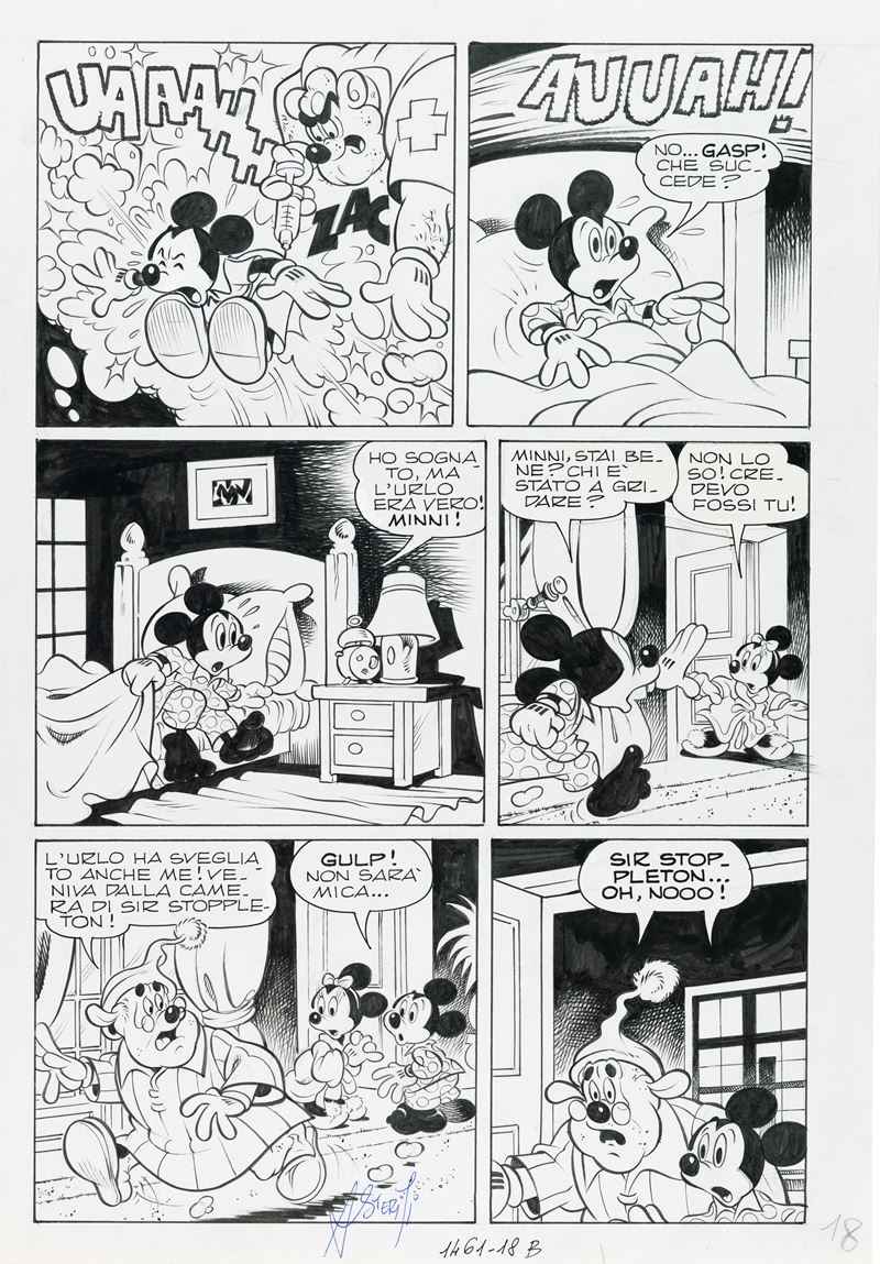 Tavola originale realizzata da Asteriti per "Topolino e il rimbambinatore folle", edita su Topolino n. 1461 a pag.18 nel novembre 1983. Firmata.