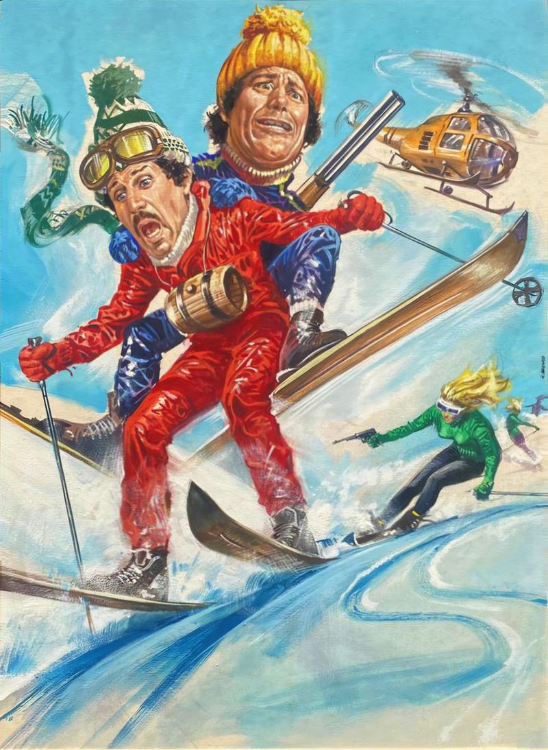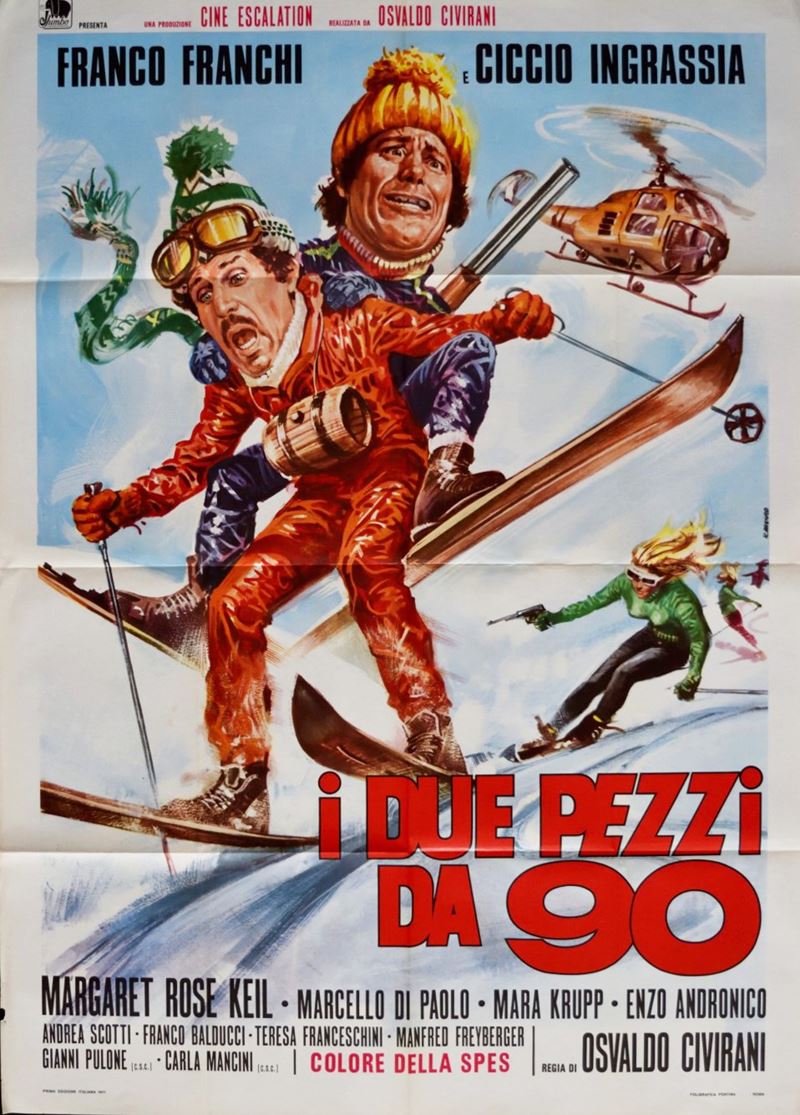 Bozzetto originale realizzato da Casaro per la locandina ufficiale del film "I due pezzi da 90", diretto da Osvaldo Civirani con Franco Franchi e Ciccio Ingrassia nel 1971. Firmato.