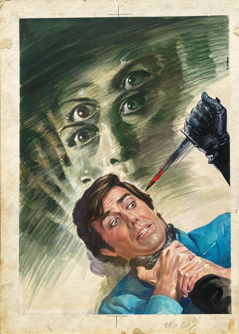 Bozzetto originale realizzato da Casaro per la locandina ufficiale del film "I due volti della paura", diretto da Tulio Demicheli con George Hilton e Anita Edberg nel 1972. Firmato.
