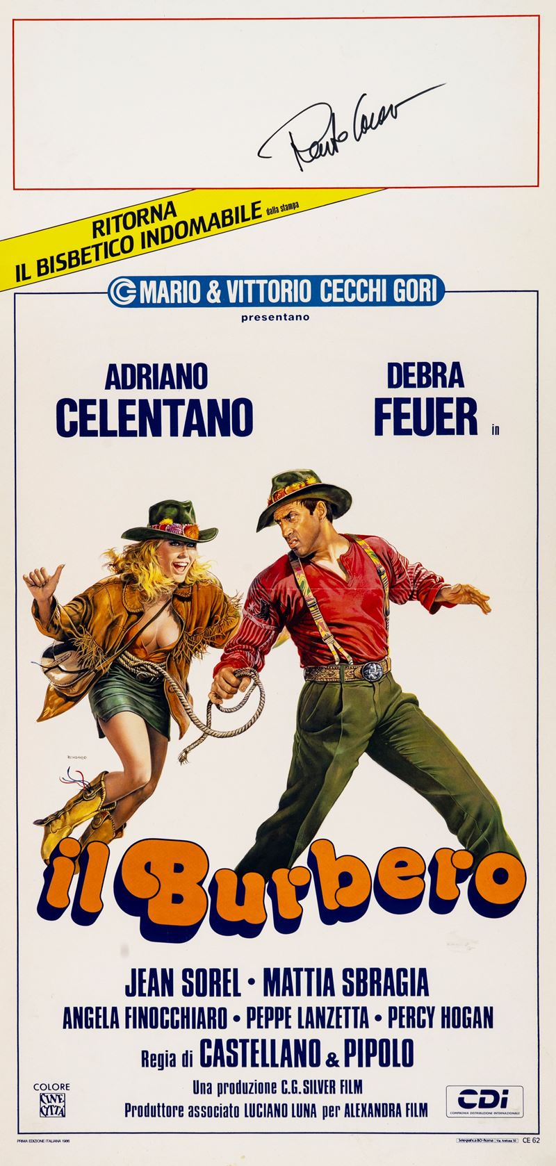 Locandina originale in prima edizione del film "Il burbero", diretto da Castellano e Pipolo con Adriano Celentano e Debra Feuer nel 1986. Presenza di difetti. Firmata da Casaro.