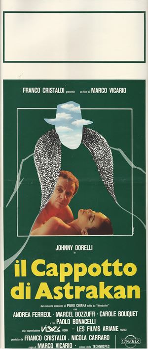 Bozzetto originale realizzato da Casaro per la locandina ufficiale del film "Il cappotto di Astrakan" diretto da Marco Vicario con Johnny Dorelli nel 1980. Firmato.