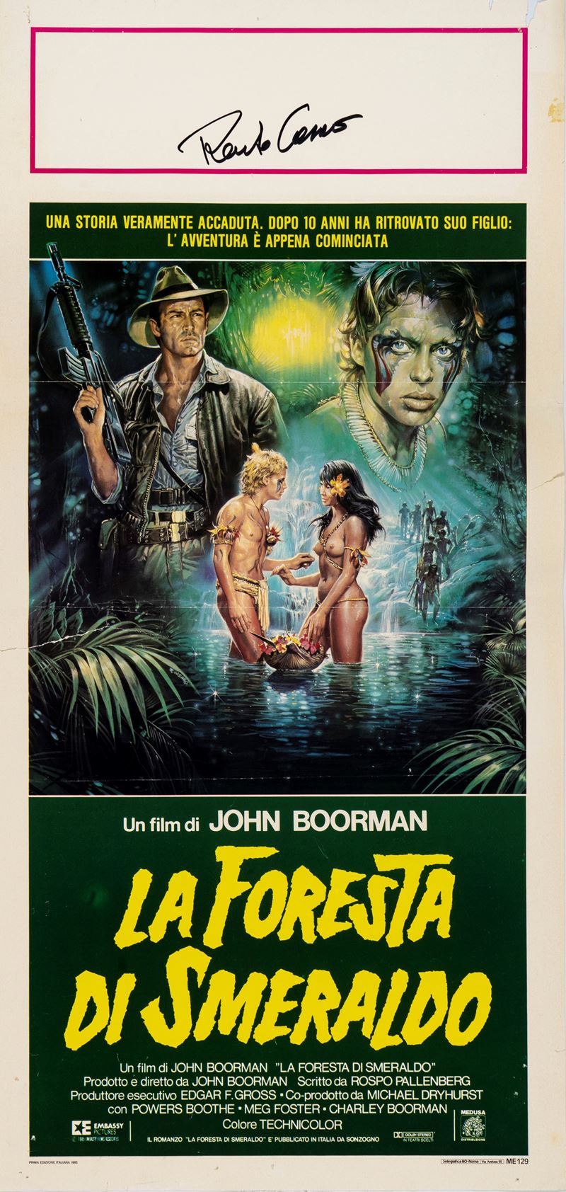 Locandina originale in prima edizione del film "La foresta di smeraldo", diretto da John Boorman con Powers Boothe e Meg Foster nel 1985. Presenza di difetti. Firmata da Casaro.
