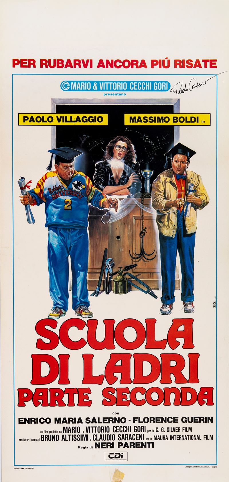 Locandina originale in prima edizione del film "Scuola di ladri - Parte seconda", diretto da Neri Parenti con Paolo Villaggio e Massimo Boldi nel 1987. Presenza di difetti. Firmata da Casaro.