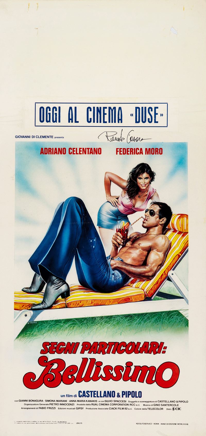 Locandina originale in prima edizione del film "Segni particolari: bellissimo", diretto da Castellano e Pipolo con Adriano Celentano e Federica Moro nel 1983. Presenza di difetti. Firmata da Casaro.