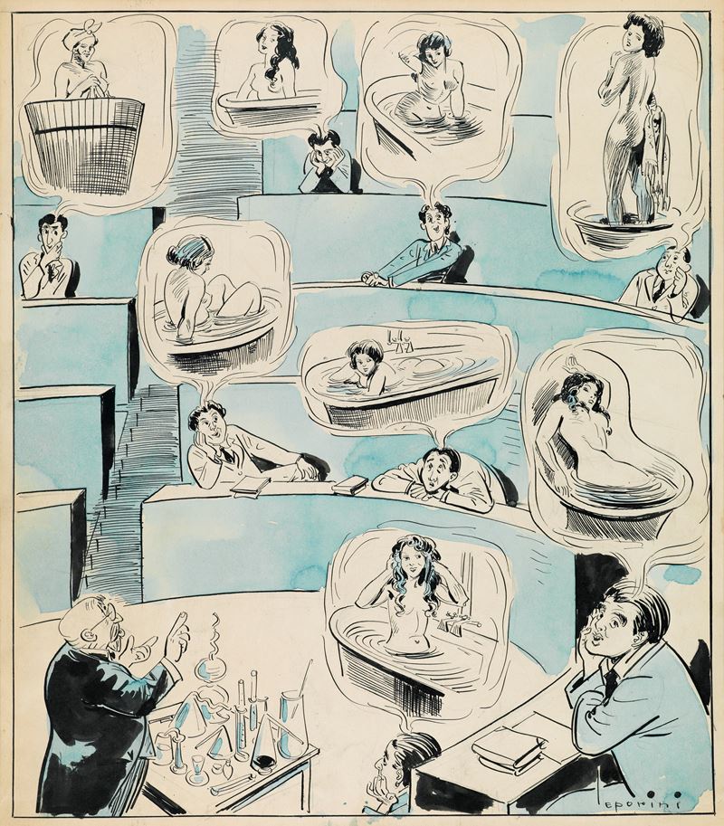 Illustrazione originale realizzata da Leporini per Il Travaso durante gli anni '30. Firmata.