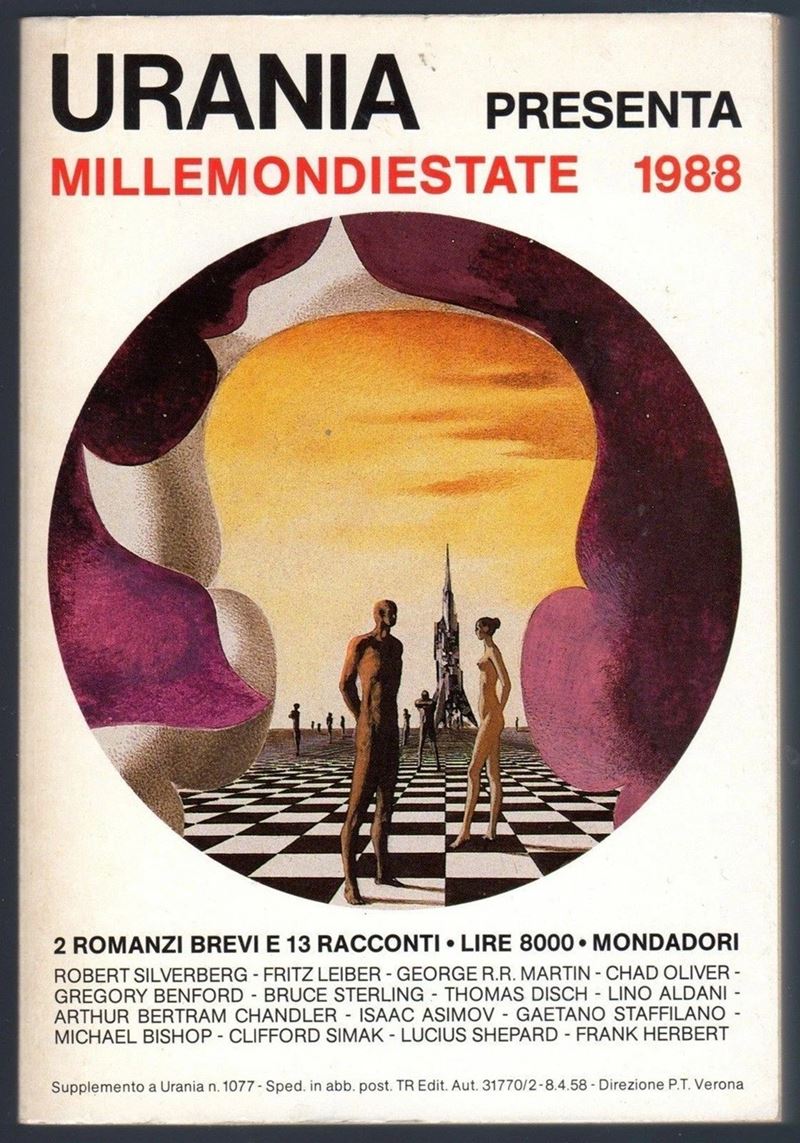 Originale di copertina realizzato da Thole per il romanzo "Time Enough for Love" di Robert A. Heinlein, pubblicato per la prima volta in Germania dalla casa editrice Heyne Verlag nel 1980. Pubblicato in Italia nella collana Urania con il titolo "Millemondiestate " dalla Mondadori nel 1988. Tra le vette artistiche più alte dell'autore olandese. Firmato.