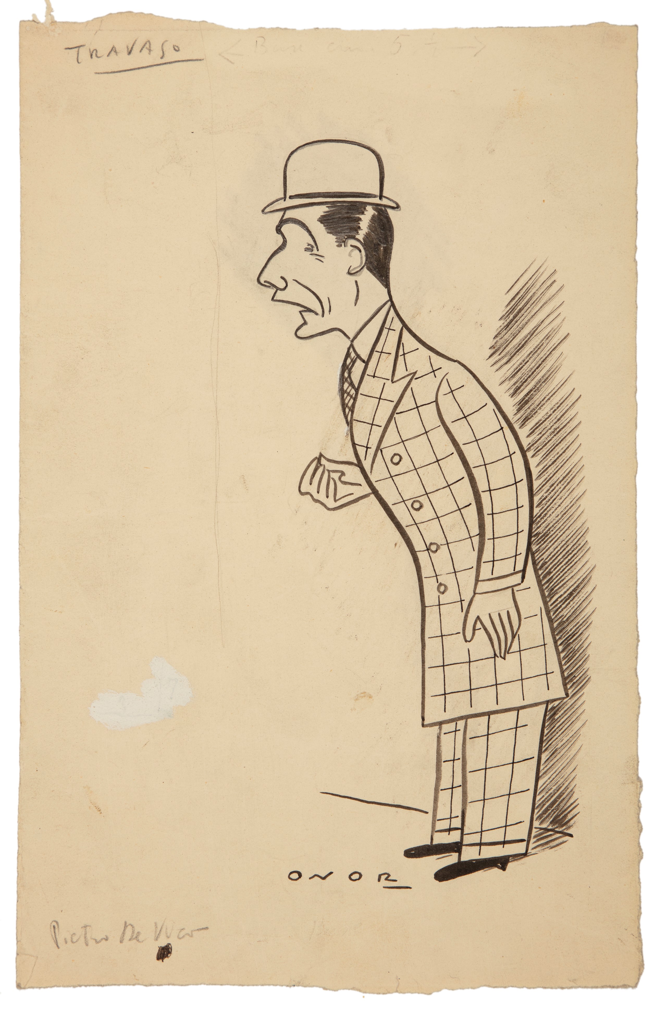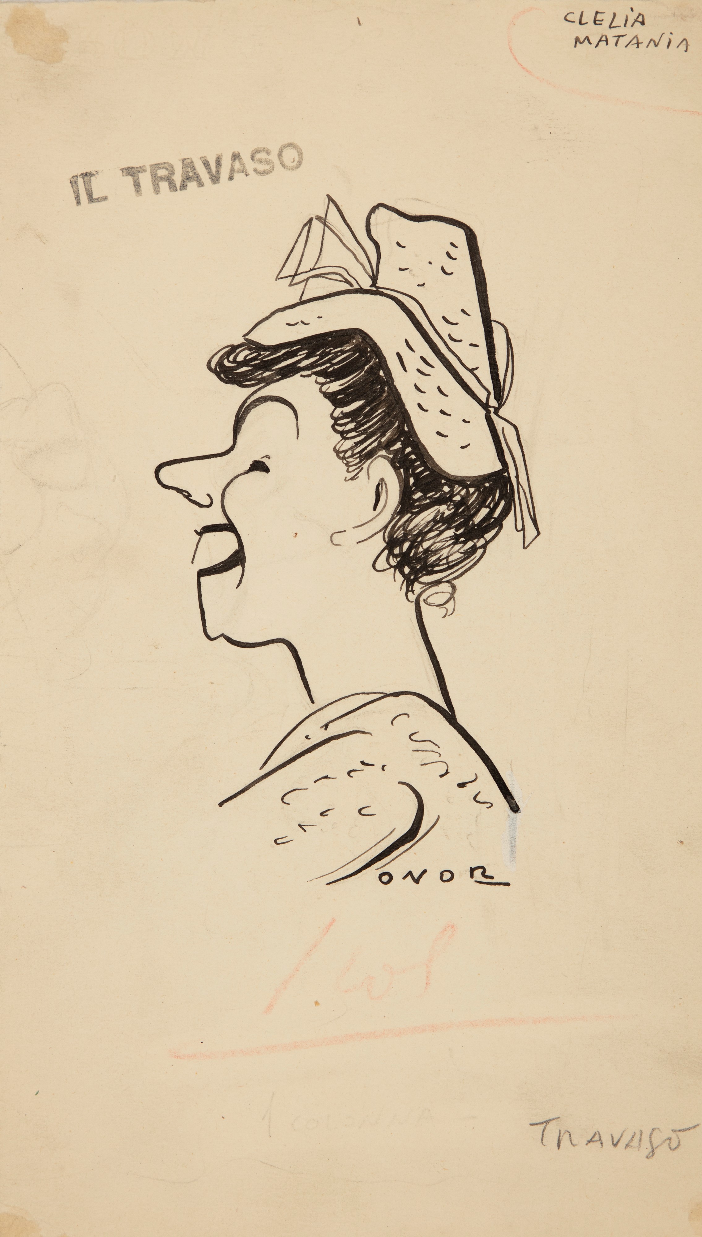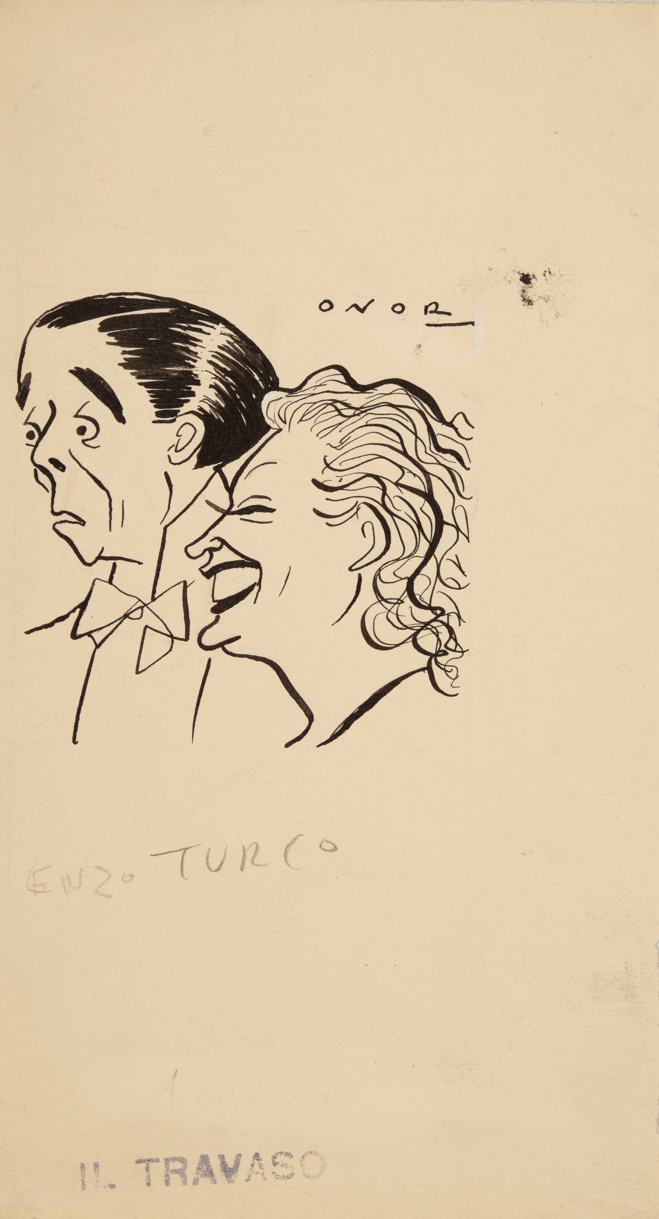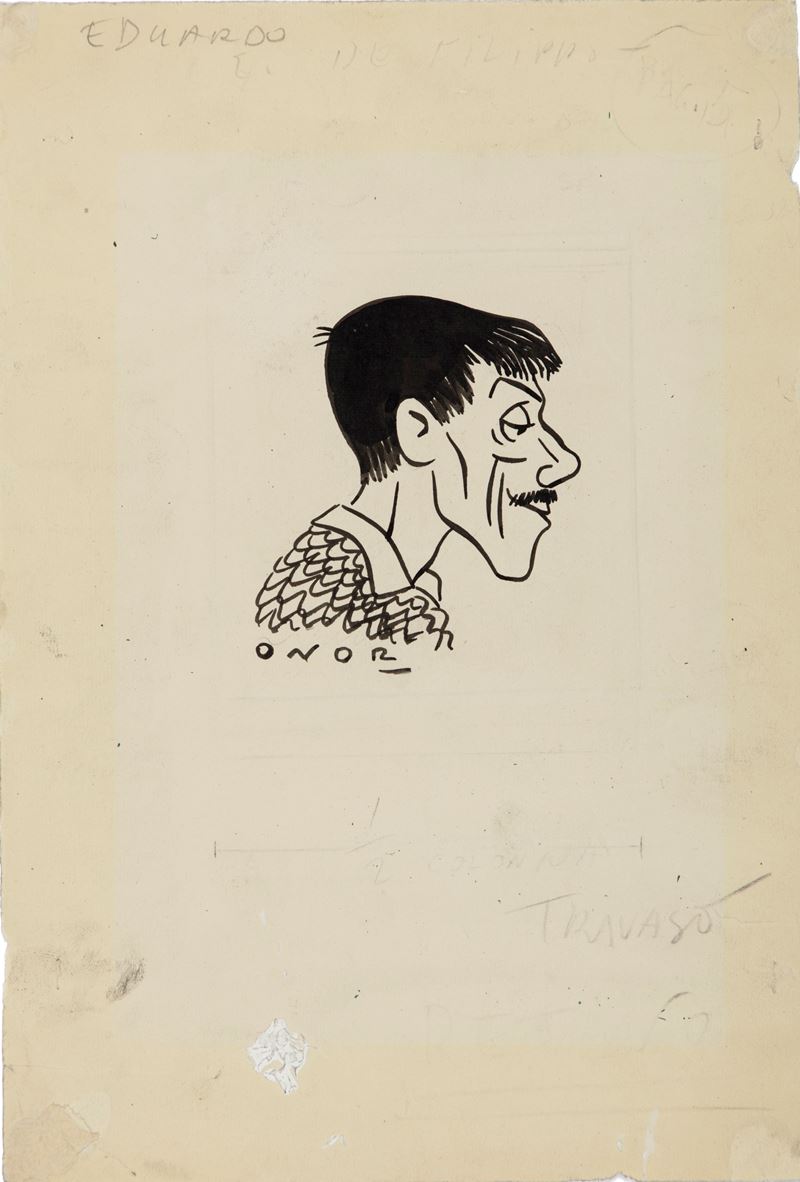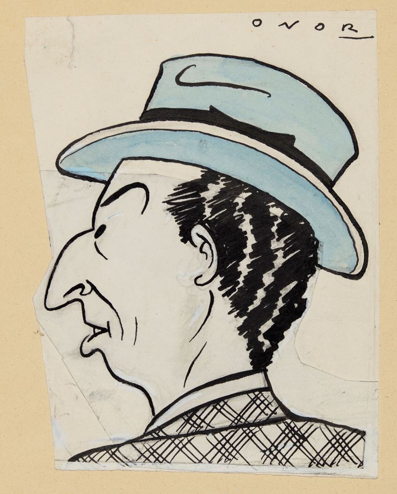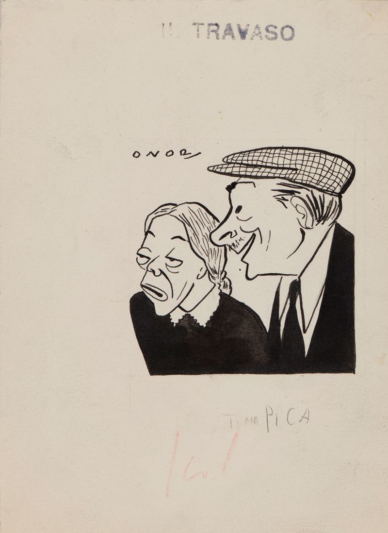 Lotto composto da 6 disegni originali realizzati da Onorato per il Travaso negli anni '40. Lievi pieghe ai margini. Firmati.