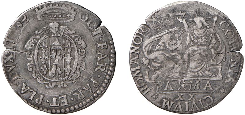 Dritto: Stemma ovale coronato; - Rovescio: Il Redentore con scettro, seduto e radiato, a destra, incorona la Beata Vergine seduta e sormontata dallo Spirito.