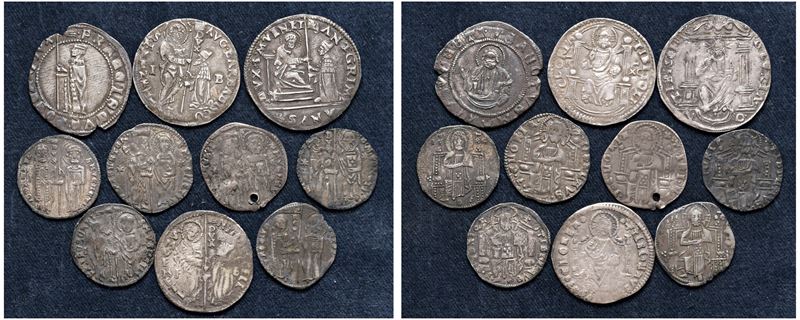 * La monetazione della Repubblica di Venezia, grazie alla sua stabilità e all’elevata fiducia di cui godeva nei traffici internazionali, fu tra le più imitate e falsificate del mondo medievale e moderno. Questo fenomeno non rappresenta un aspetto marginale, ma costituisce una diretta conseguenza del prestigio raggiunto dalle monete veneziane, in particolare dal ducato d’oro, divenuto per secoli una moneta di riferimento nell’area mediterranea e oltre. Fin dal XIII secolo, la larga diffusione del ducato veneziano nei mercati del Levante, dei Balcani e del Mediterraneo orientale favorì la nascita di imitazioni locali, spesso prodotte per rispondere a esigenze pratiche di scambio. Queste emissioni riprendevano peso, titolo e iconografia delle monete veneziane, pur presentando uno stile più semplificato e leggende irregolari. In molti casi non si trattava di falsi nel senso stretto del termine, ma di monete funzionali al commercio, create per sostituire un mezzo di pagamento universalmente accettato ma non sempre disponibile. Accanto a queste produzioni si svilupparono vere e proprie falsificazioni d’epoca, destinate a circolare fraudolentemente insieme alle monete ufficiali. Esse colpirono soprattutto i nominali d’argento e di mistura di largo uso, mediante la riduzione del titolo o l’impiego di metalli vili. La loro diffusione fu favorita da periodi di crisi economica e dalla difficoltà di controllo su un territorio commerciale vastissimo. La Repubblica reagì con leggi severe e pene esemplari, consapevole che la credibilità della moneta era un elemento essenziale della propria forza economica. In epoca più recente, con l’affermarsi del collezionismo numismatico tra XIX e XX secolo, la falsificazione assunse finalità diverse. Celebre fu lo studioso e falsario Luigi Cigoi che realizzò numerosissimi falsi destinati al mercato antiquario. Tanto premesso, riteniamo che le imitazioni orientali e le falsificazioni, coeve o più moderne, costituiscano un elemento di grande interesse per lo studio e l’approfondimento. Immedesimandoci nel collezionista che consapevolmente ha raccolto tali esemplari, abbiamo voluto rispettarne l’approccio collezionistico, riproponendo alcune di queste imitazioni o riproduzioni, certamente non prive di un loro valore economico e collezionistico, all’interno di lotti multipli ricchi di esemplari autentici, così da offrire uno spaccato significativo della monetazione circolante all'epoca.