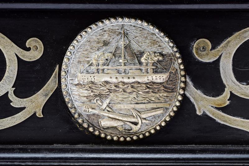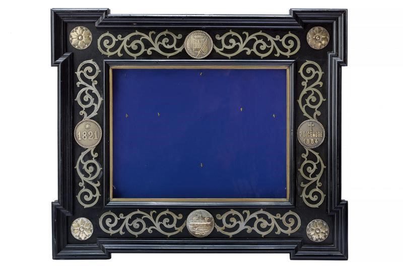 Bellissima cornice in legno scuro, arricchita da medaglioni e decorazioni in metallo bianco. In quello centrale in alto è raffigurato lo stemma del generale sotto corona comitale, posto fra un ramo e una bandiera. Nei medaglioni laterali compaiono l'anno di nascita “1821” e la data di morte “7. DICEMBRE 1884”, quest'ultima posta sotto una croce. In basso è raffigurata una nave da guerra a vapore. Agli angoli sono presenti rosette, collegate tra loro da volute decorative. Probabilmente la cornice era utilizzata come espositore per ordini ed altre decorazioni.
