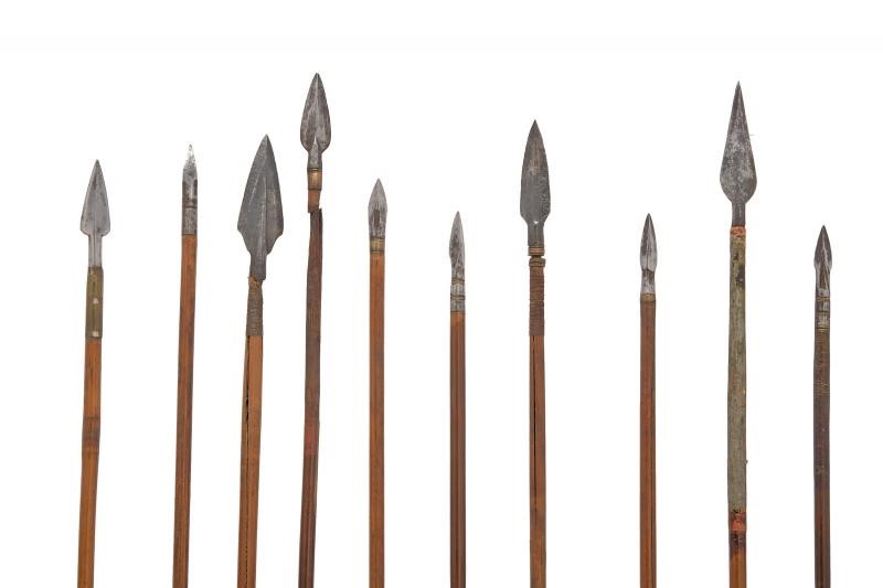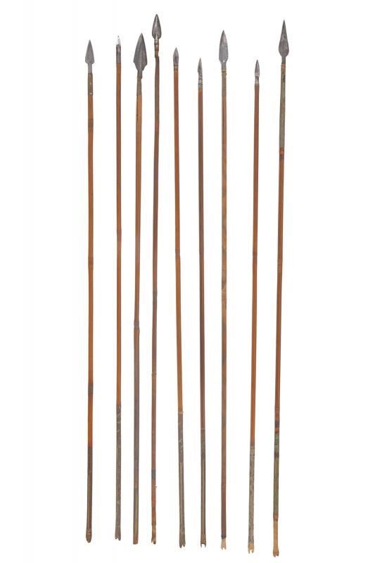 Cuspidi in ferro di varie forme; fusti in legno. Alcuni difetti e mancanze.