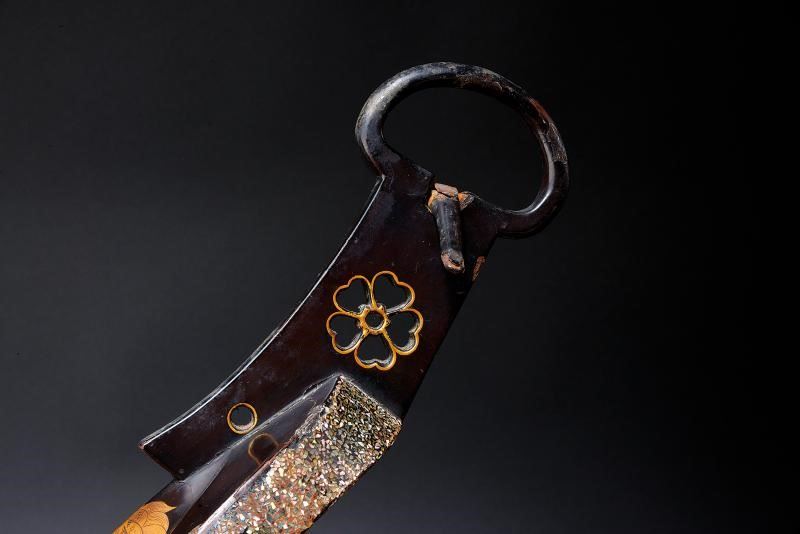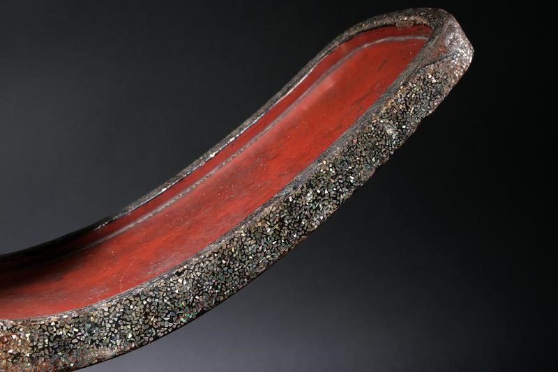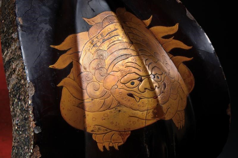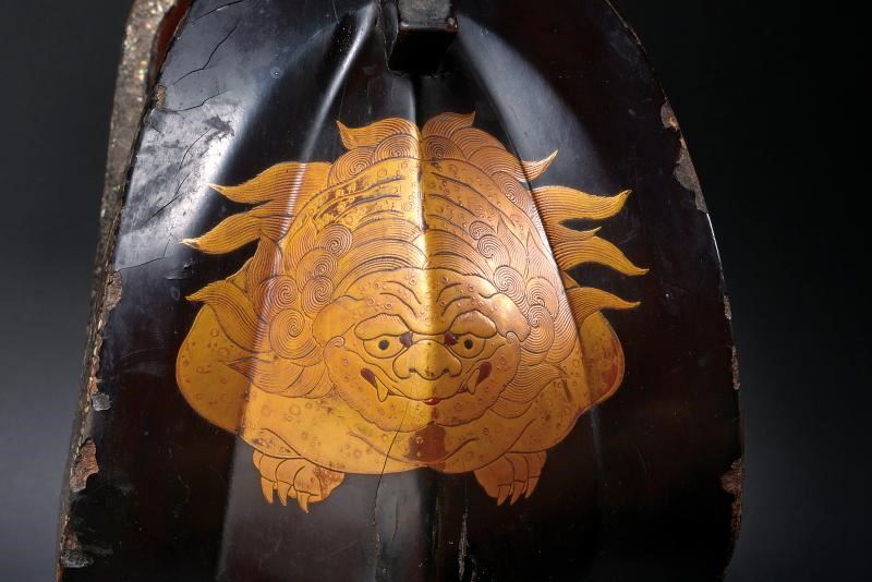 Struttura in ferro rivestita esternamente in lacca bruna. Recanti entrambi sul lato anteriore effige in Makie di uno Shishi (A-un-shishi) color oro. Mon-ita decorati a traforo con fiori di ciliegio e con horosuke-ana. Il bordo con decoro a scaglie in madreperla. Le panche laccate rosse. Condizioni fra buone e medie: segni d'uso e del tempo, alcune mancanze alle finiture.