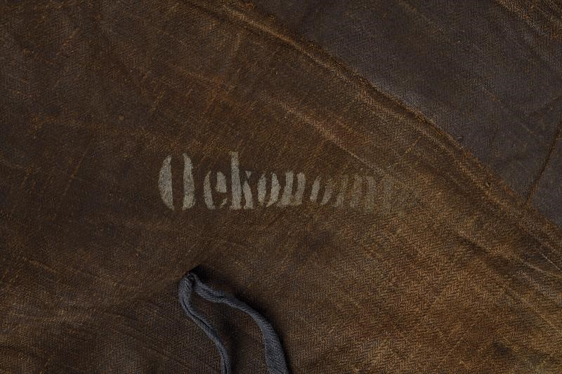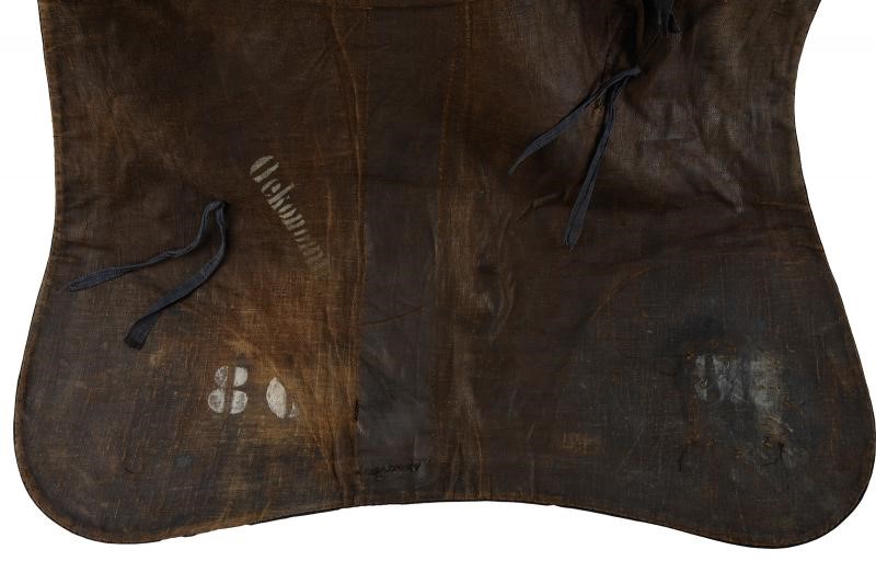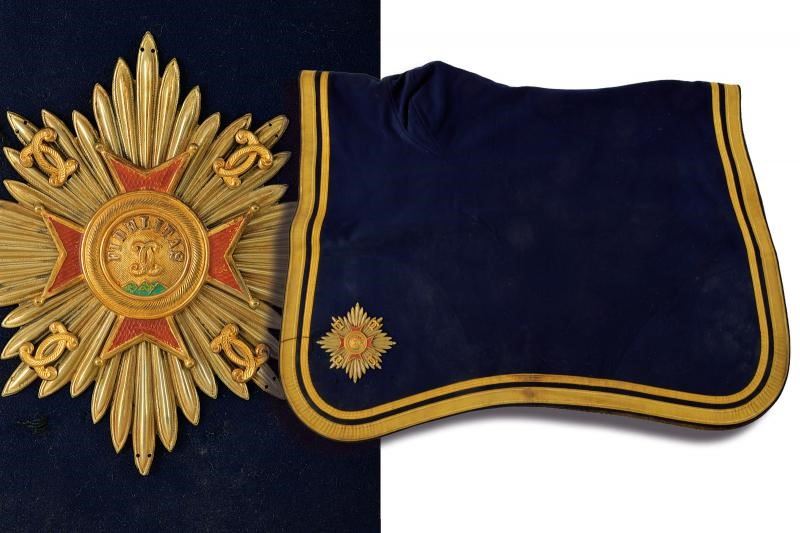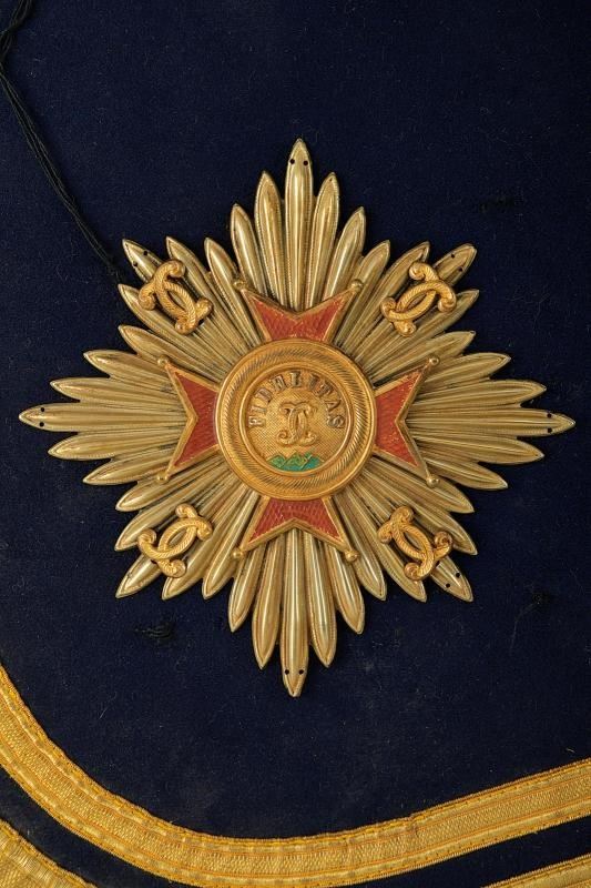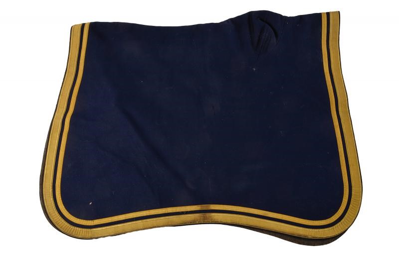 In tessuto blu con doppio bordo in canutiglia. Su un angolo la stella dell'Ordine della Fedeltà in metallo (staccata).
