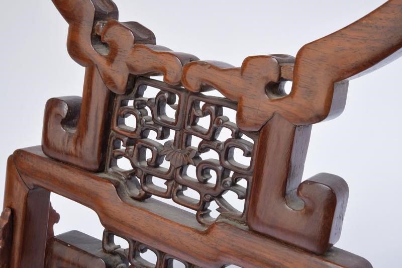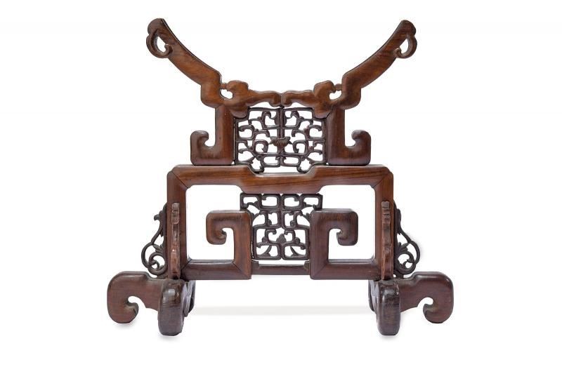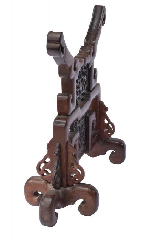 Robusta struttura in legno, scolpita e operata a traforo.