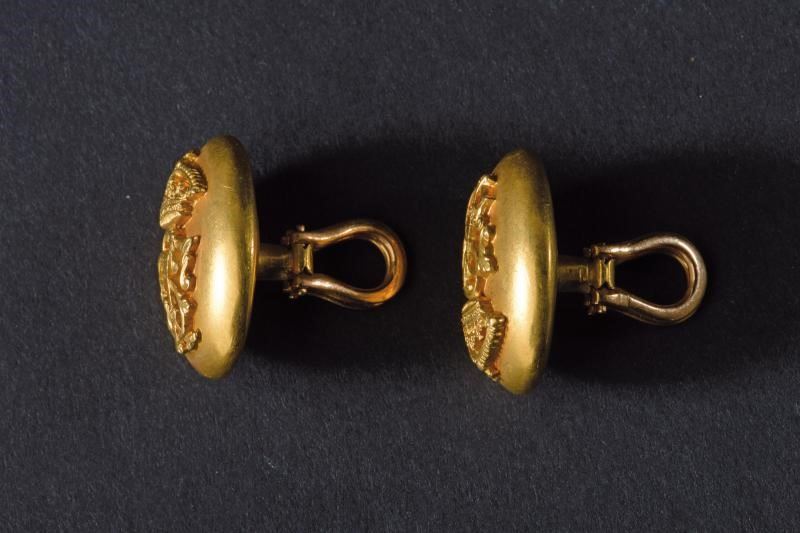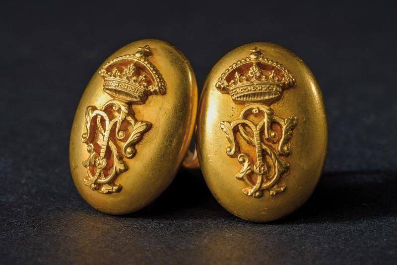 Paio di gemelli in oro giallo appartenuti al Duca. Di forma ovale e convessa, recano al centro il monogramma “TS” sotto corona. Peso complessivo: 16 g.