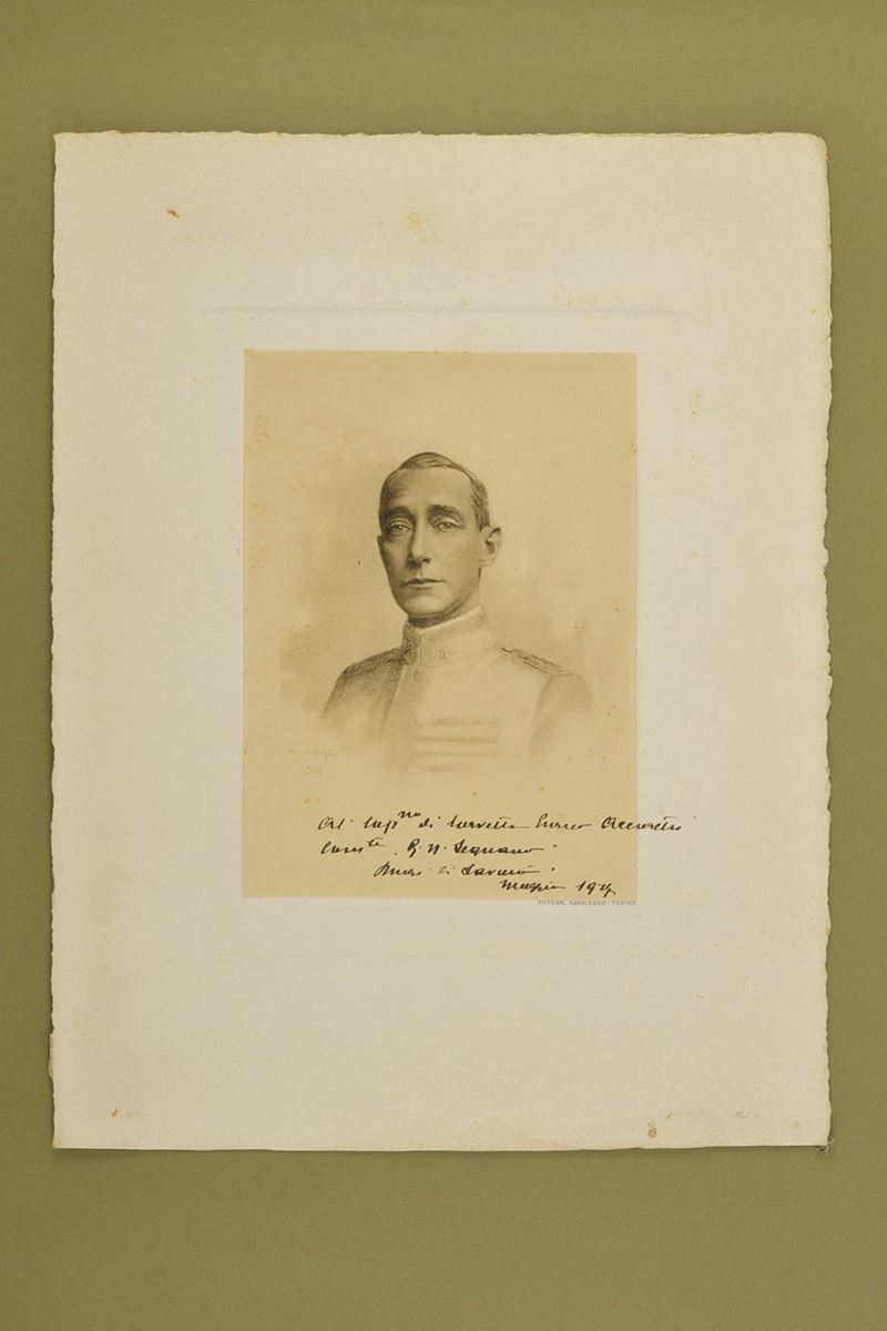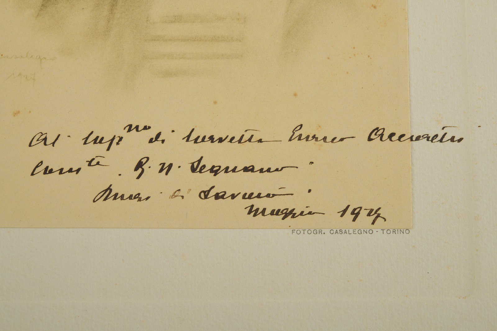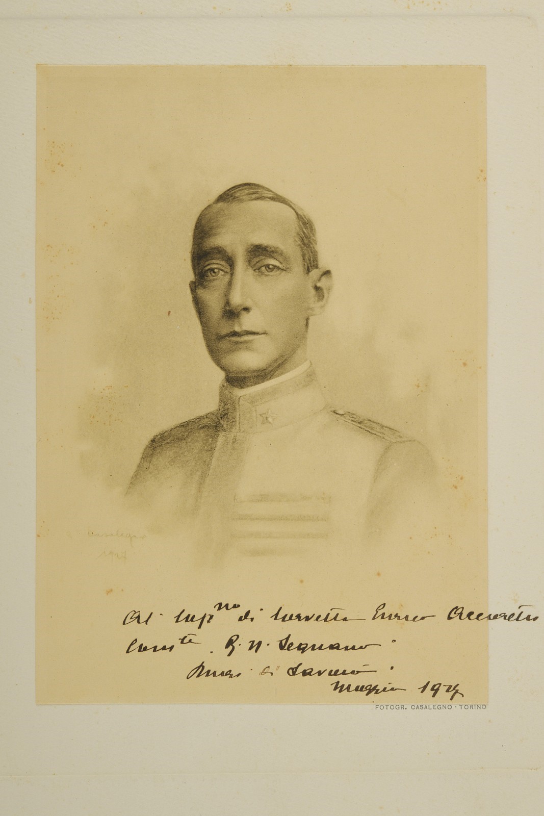 Fotografia di un ritratto del Duca di Savoia con dedica "Al. Cap.no di corvetta Enrico Accorretti Com.te R. N. Legnano. Duca di Savoia. Maggio 1927." Su passe-partout.
