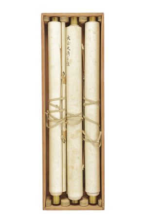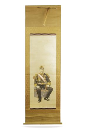 I tre rotoli finemente dipinti con tre militari in uniforme con ordini. Ognuno marcato in lingua Giapponese, uno "Sua Maestà Gran Maresciallo", uno "Ritratto del Generale Oyama" e l'ultimo "Ritratto del Generale Taka Toshi". Tutti conservati insieme in una scatola di legno marcato sempre in lingua Giapponese "Grande Offerta della Marina Orientale a sua Maestà il Gran Maresciallo Generale Oyama - Tre rotoli".
