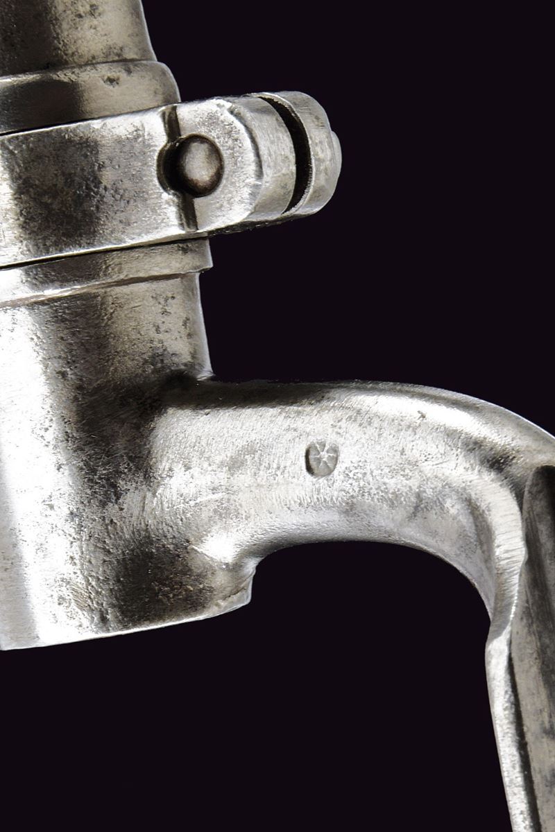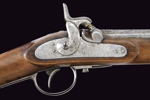 Canna rigata (rigatura non più visibile) a due ordini: prima ottagonale, con la firma del fabbricante “FERD. FRUWIRTH” e vari punzoni sul lato destro, con alzo fisso; poi tonda con mirino che funge anche da attacco per la baionetta; calibro 14 mm. Codetta liscia brunita. Batteria a percussione con molla in avanti. Cassa intera in legno con fornimenti, bacchetta e baionetta in ferro. Cinghia in cuoio.
