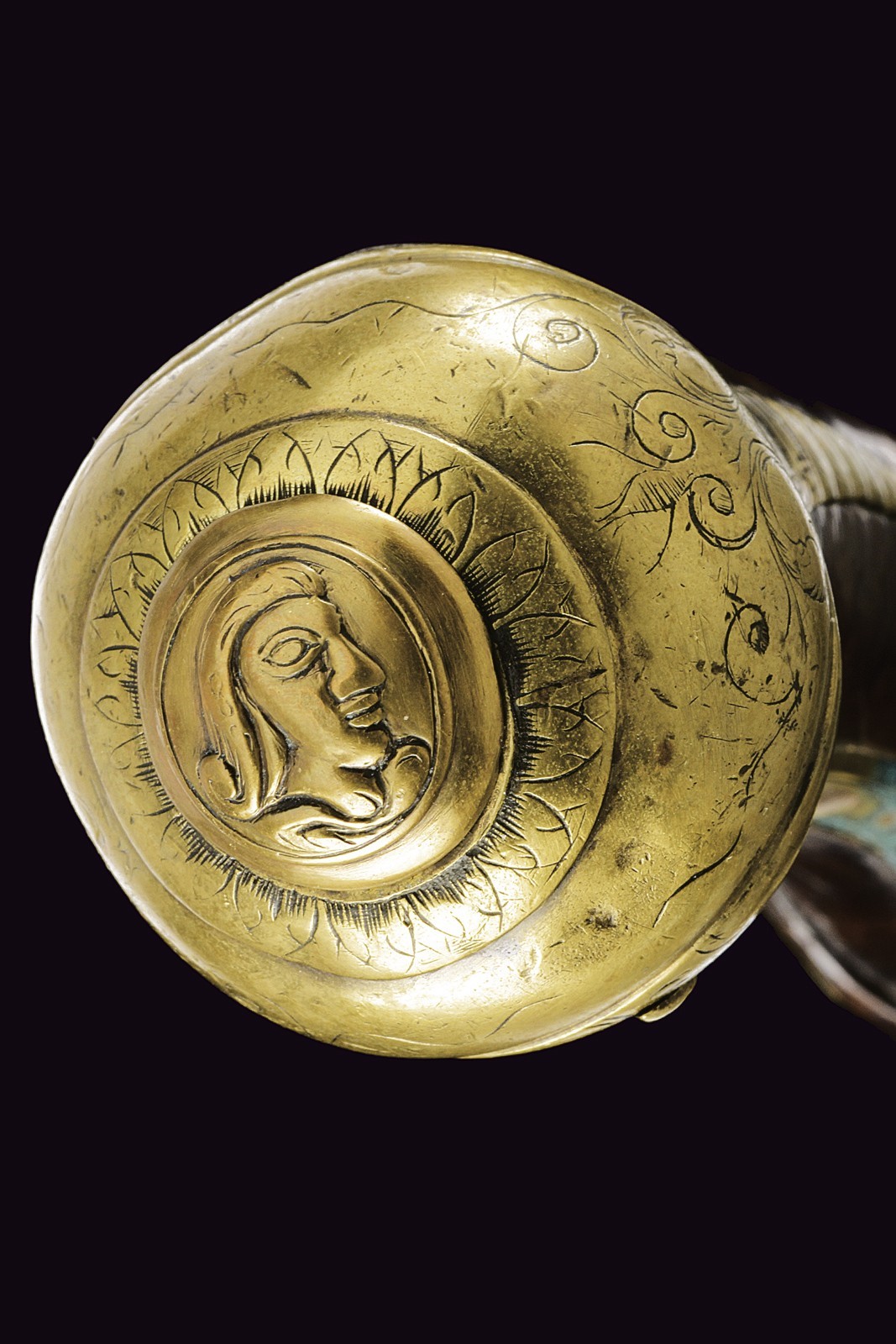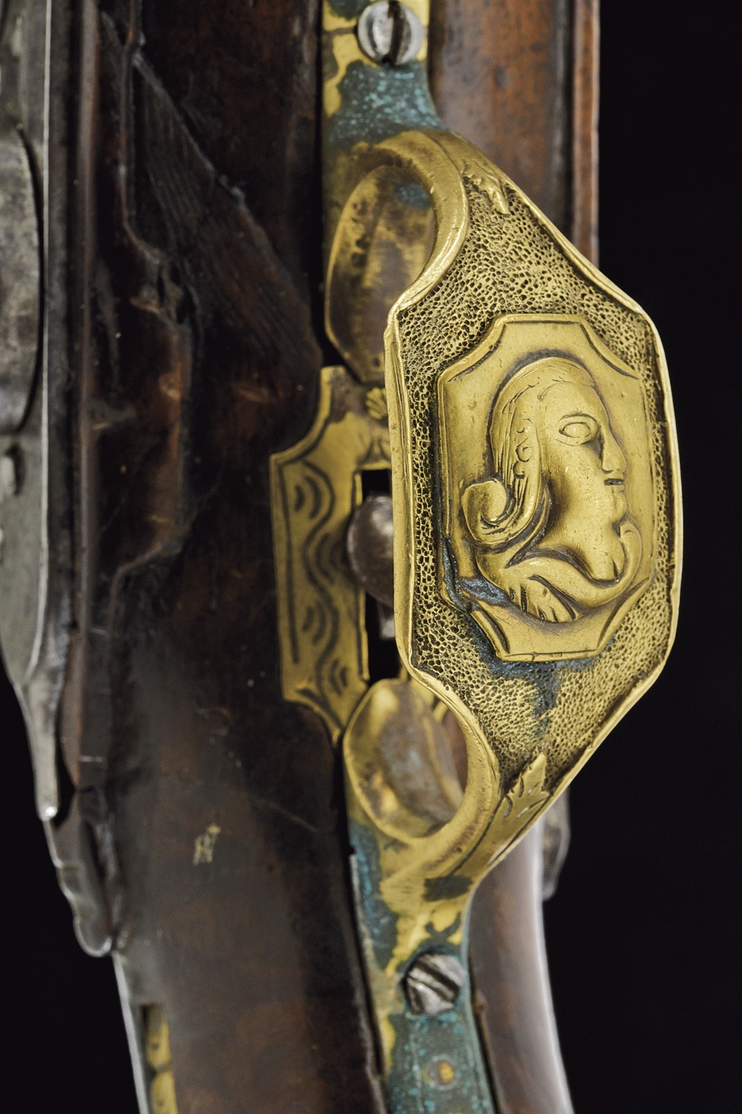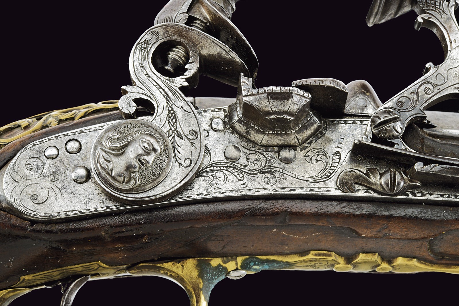 Canna liscia a tre ordini, quadra, faccettata e tonda con cornicetta scanalata al secondo cambio d'ordine, cal. 16 mm. Batteria con cartella, cane e collo della martellina piatti, con fini incisioni a volute, la vite del cane intagliata con un profilo muliebre; internamente firmata "Il Cerboncelli". Cassa intera in noce con profilature scorniciate; il terminale del fusto con una fascetta in ottone scanalato. Tutti i fornimenti in ottone ben incisi, il ponticelli e e il bottone della coccia con profili muliebri in rilievo. La contropiastra e il decoro introno alla codetta, intagliati e messi a giorno. Bacchetta in legno di restauro con battipalla in corno.