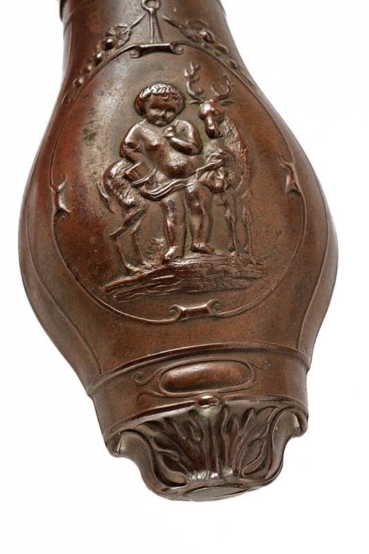 Tutti in rame con cannello in ottone, una a forma di lira marcata "FAB.QUE DE NOUCHET"; una con putto e cervo, una a forma di conchiglia ed una decorata a intreccio con bordo a fogliame.