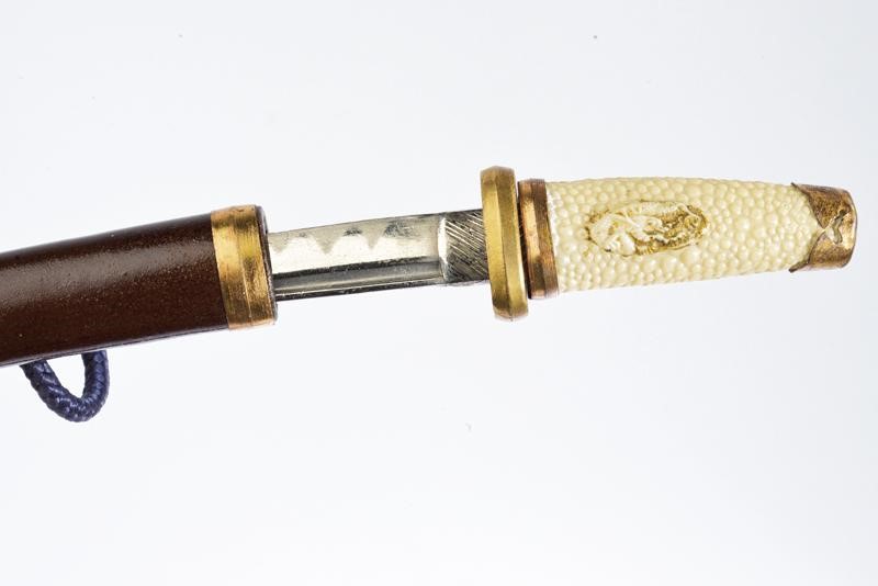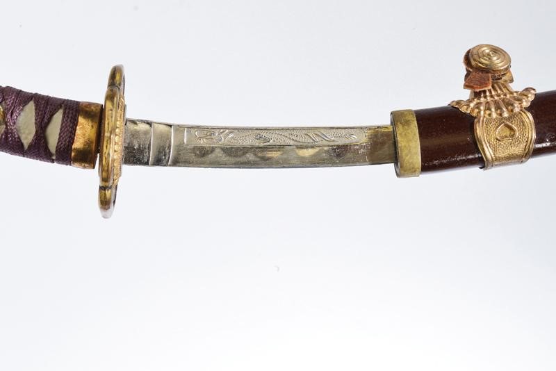 La lama del tachi con horimono inciso a drago, il koshirae con fornimenti in metallo. La lama del tanto con Bo-Hi. Bel katana-kake laccato di nero e con decorazioni in oro. Piccoli difetti.