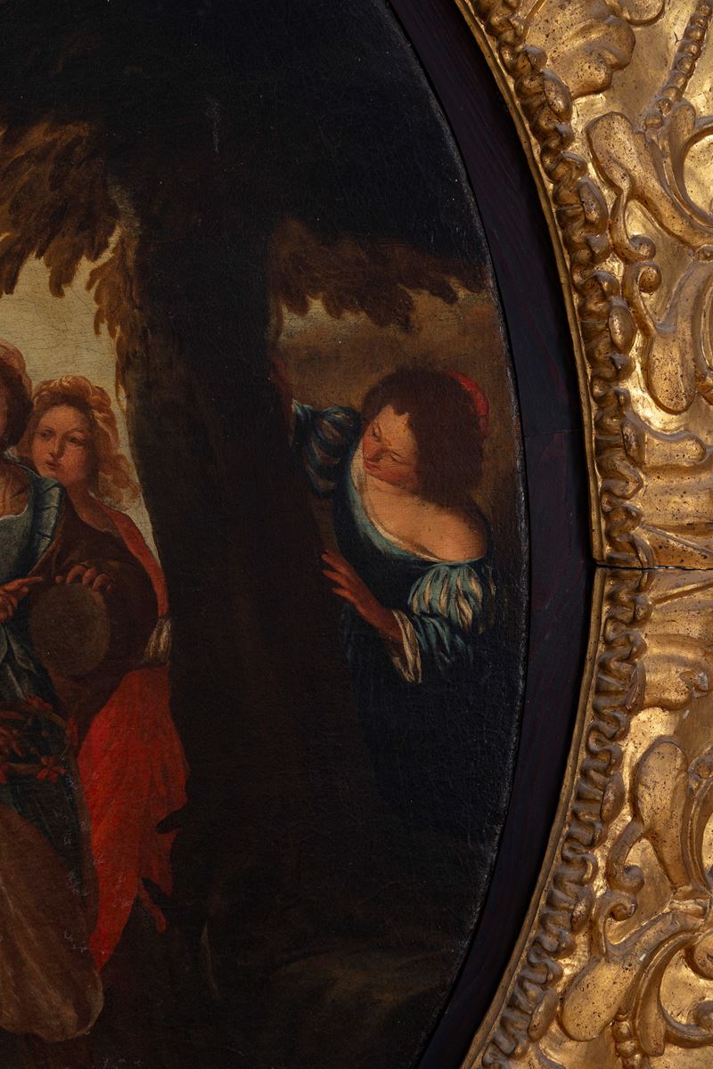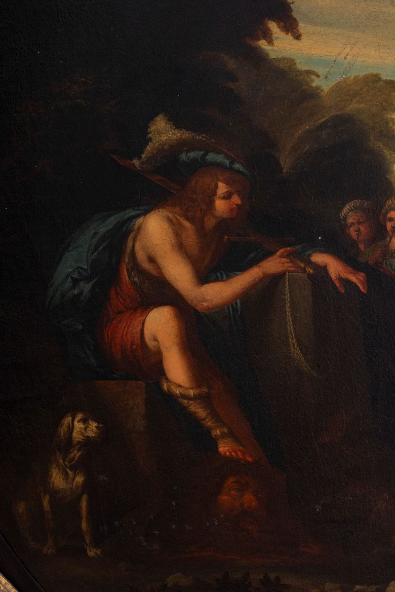 L'opera va riferita alla maturità dell'artista, più vicina al classicismo accademico di Domenichino. Il soggetto richiama il famoso Trionfo di Davide oggi agli Uffizi, databile invece ad una fase più giovanile, ma se ne differenzia per una scelta compositiva meno enfatica e meno dinamica, in cui viene accentuata la posa riflessiva e tranquilla dell'eroe biblico e in cui le fanciulle non si abbandonano ad una danza frenetica ma avanzano in modo ordinato ed elegante dal fondo, scandendo ritmicamente le spazio. Sempre agli Uffizi si conserva un disegno autografo di Spinelli, da porre in relazione con il dipinto qui offerto proprio per la disposizione del corteo femminile che avanza frontalmente e in schiera serrata, con una delle figure che solleva il braccio destro allo stesso modo per agitare i sonagli.