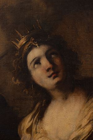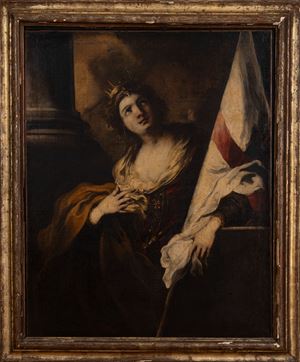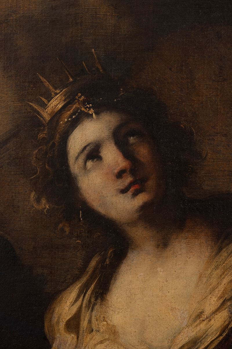 L'opera costituisce una seconda versione - che può ritenersi sempre autografa per l'alta qualità che la contraddistingue - della Sant'Orsola di collezione privata pubblicata da Manzitti (C. Manzitti, Valerio Castello, Torino 2004, p. 131, n. 97) che, secondo lo studioso, è da collocare intorno ai primi anni Cinquanta e potrebbe essere identificata con la Sant'Orsola citata da Alizeri nel Palazzo del Marchese Bernardo Sopranis in via Sant'Agnese insieme ad altri tre dipinti raffiguranti una Santa Cecilia, il Ratto di Elena e il Trionfo di Davide (F. Alizeri, Guida Artistica per la città di Genova, Genova, 1846-1847, vol. I, p. 583).