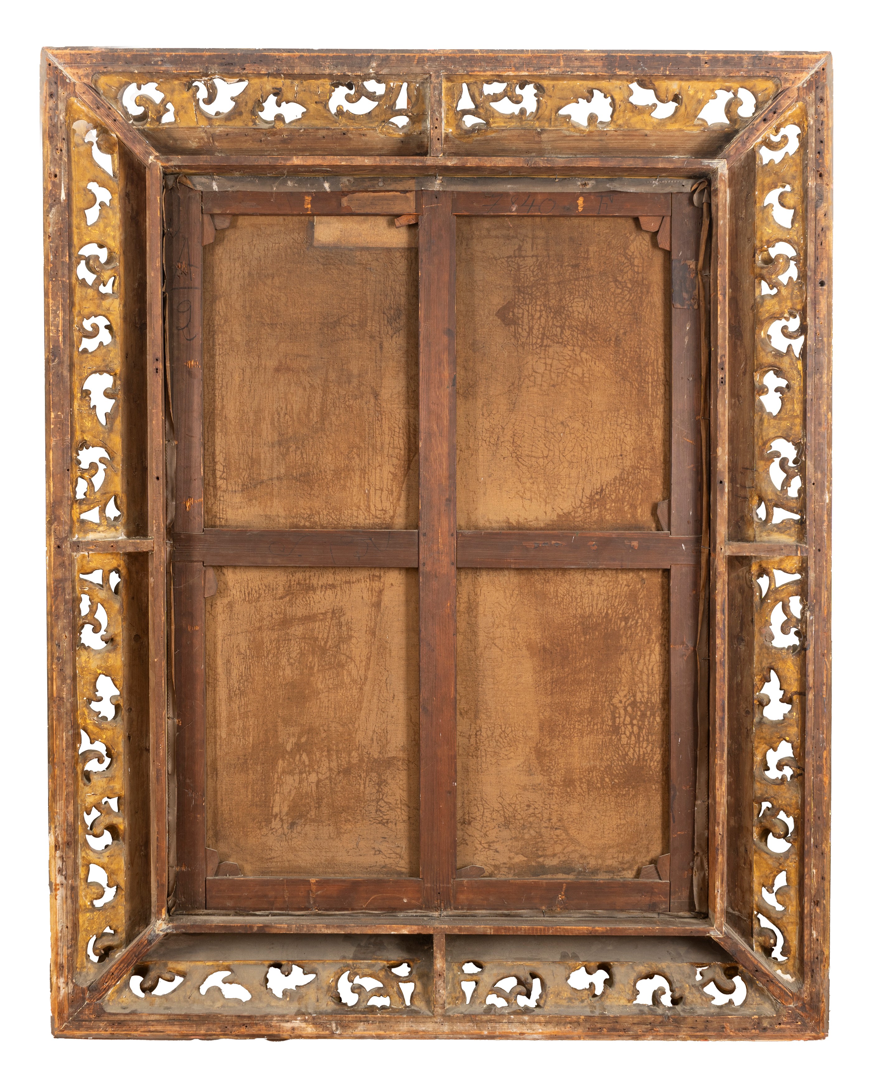 al retro, sul telaio: antico cartellino a stampa de The Royal Yorkshire Jubilee Exhibition con scritti a inchiostro riferimenti all'autore e al proprietario (Isaac Holden Sq.); antico cartellino a stampa illeggibile.