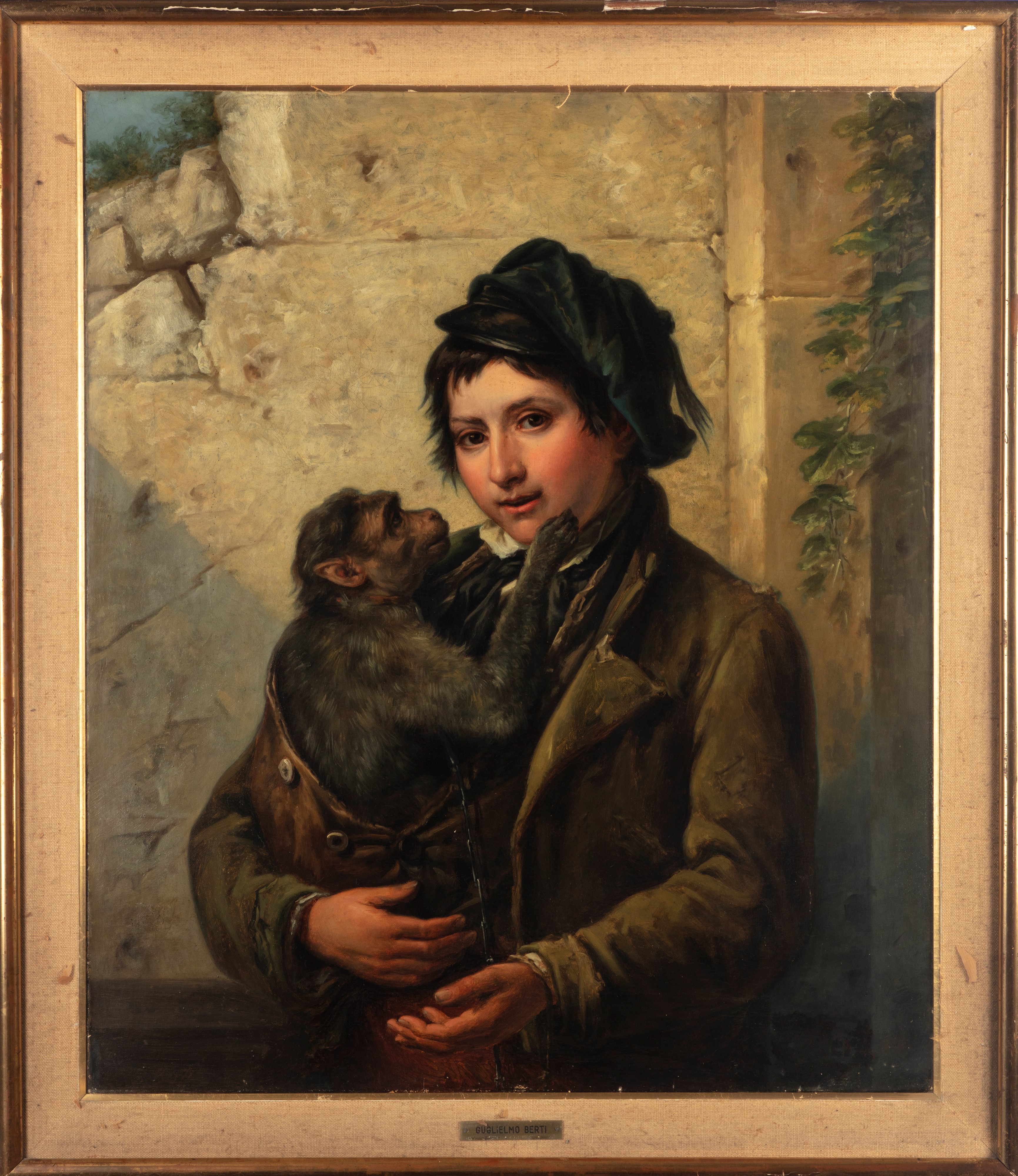 Qui, in sintonia con la generazione precedente, vale a dire con le trattazioni più puntigliose di Antonio Rotta, Antonio Zona o Gugliemo Stella, ci consegna un ragazzo di strada quasi intento ad aprire la mano per accogliere un'offerta, dopo un numero circense con la propria scimmietta, resa con un dato veristico sorprendente.