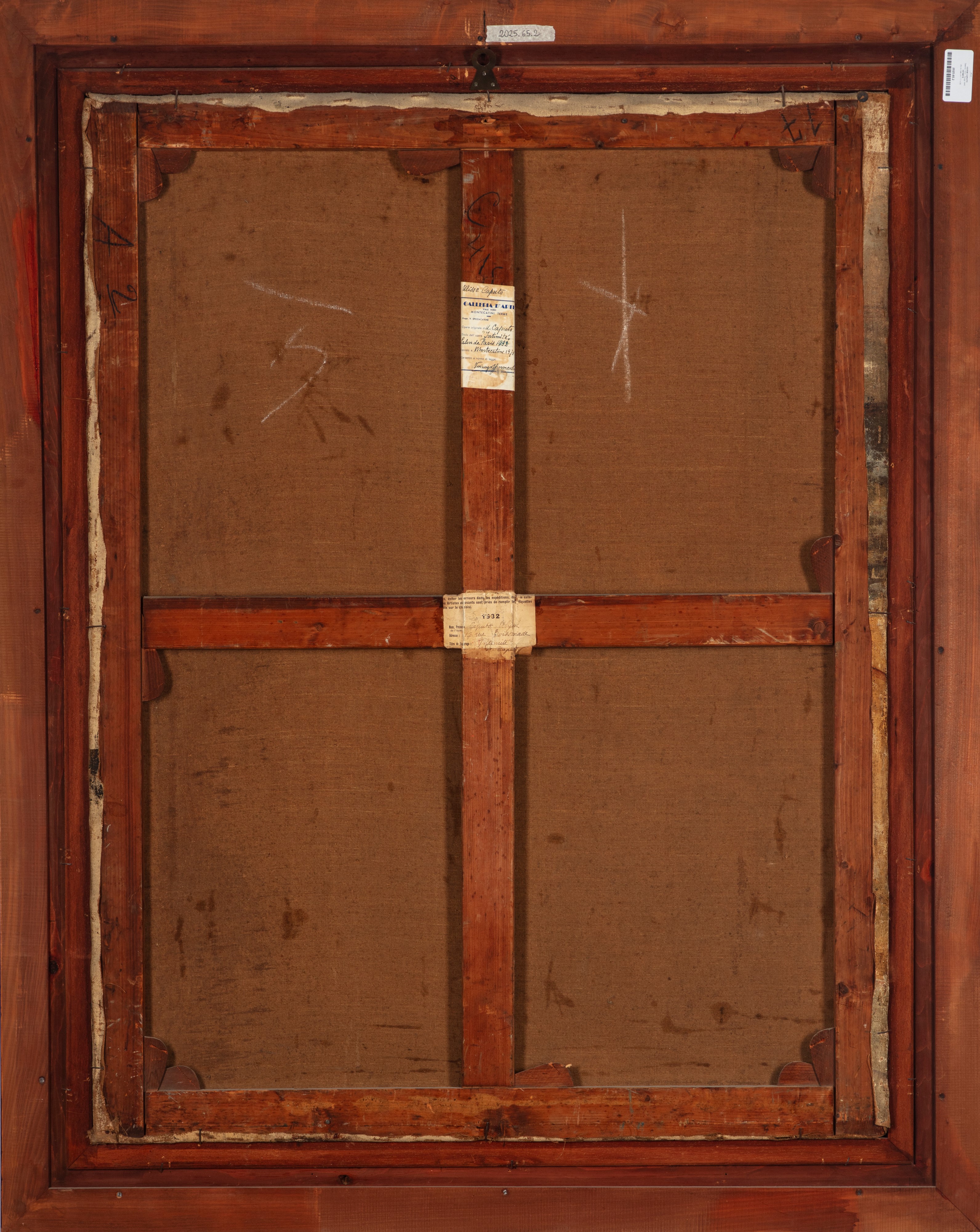 al retro, sul telaio, etichetta del pittore con titolo dell'opera ed etichetta della Galleria d'Arte di Montecatini Terme