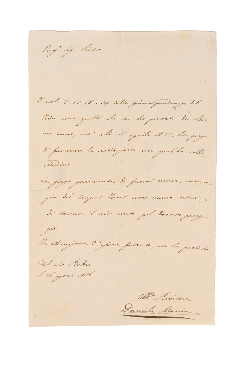 La lettera in questione testimonia gli stretti rapporti di Manin coi librai veneziani, in anni di studio e attività forense intensa, prima di intraprendere la "carriera" patriottica.