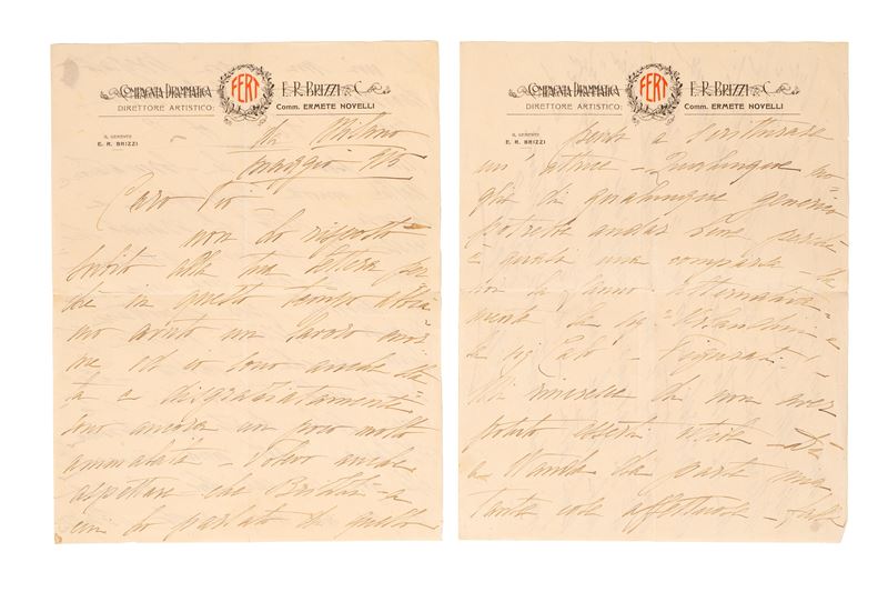 Lettera autografa firmata di 4 pagine, 295 x 225 mm., su carta intestata Compagnia Drammatica Fert.