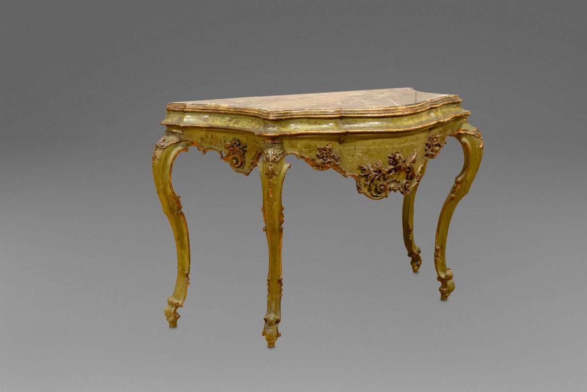 con piano in marmo di breccia fossile