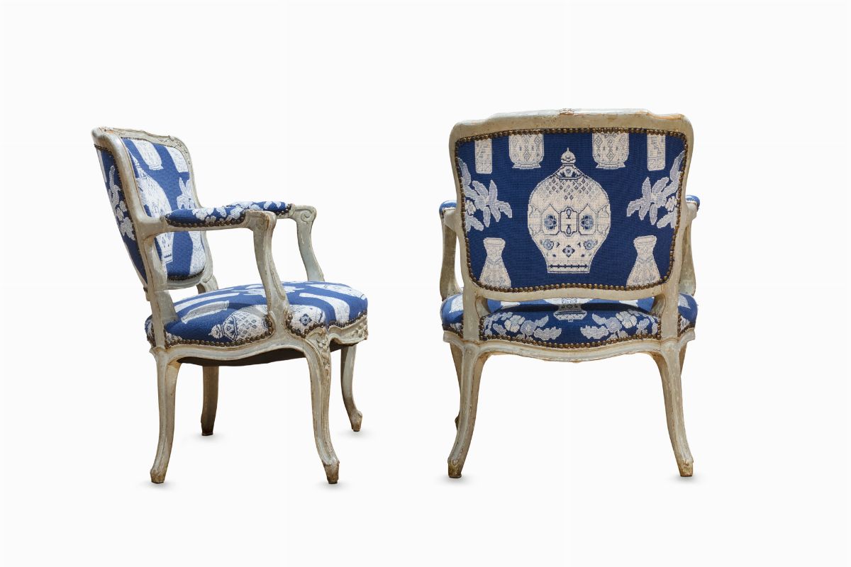 Coppia di poltrone laccate, secolo XVIII
