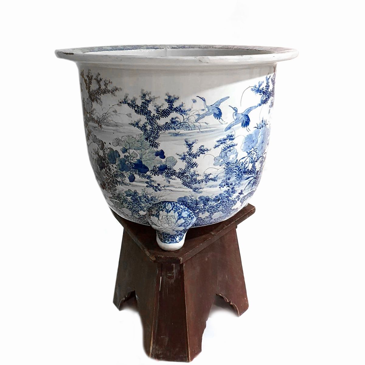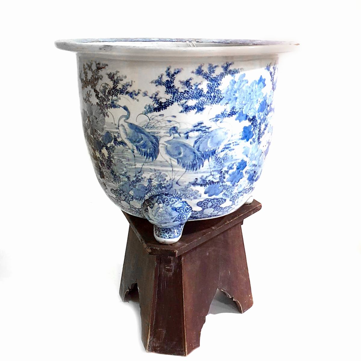 Trittico di vasi in porcellana bianca e blu, Cina secolo XIX