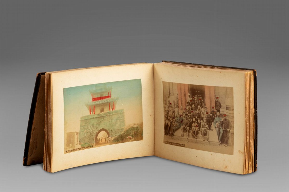 contenente 50 foto acquerellate a mano di Pechino e altre località, con copertina in lacca e oro
