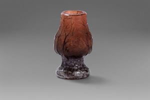 Antico vasetto in vetro con motivi a bugnato sul corpo centrale