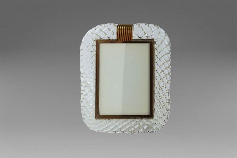 Torchon-worked Murano glass photo frame, signed Seguso, 1930s