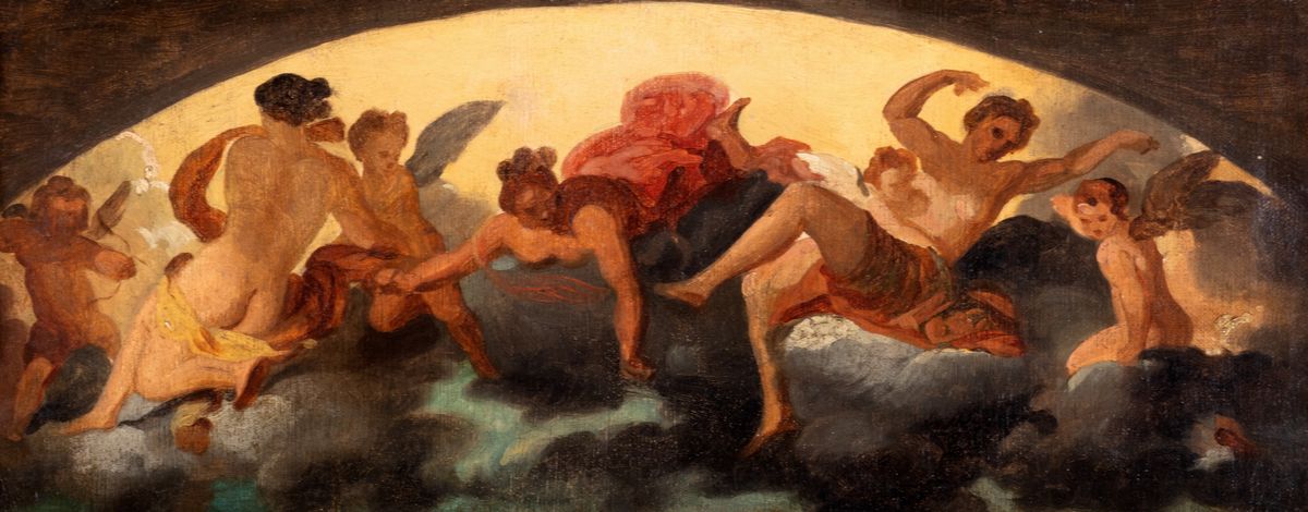 sul retro del telaio etichetta di collezione con attribuzione a Francesco Podesti