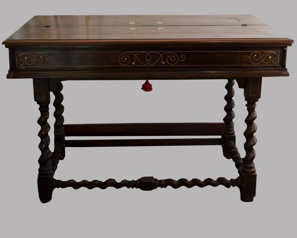 Scrivania San Filippo, con gambe e traverse a tortiglione, fine secolo XVII - inizi secolo XVIII