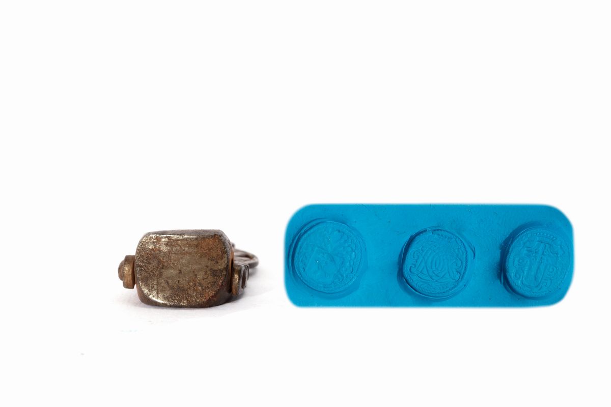 altezza totale cm 4,5 (il più grande) e cm 1,4 (il più piccolo); cm 1,8 x 1,5 (il sigillo più grande) cm 1,8 x 1,5 e cm 1,9 x 1,5 (i sigilli)